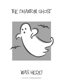Print 2 of “The Phantom Ghost Was Here” sheets (**Links available on the right side of the screen. SEE FAQ BELOW for details) and 2 of “The Phantom Ghost” poems. Then make or purchase 2 delicious treats. Choose 2 neighbors to give them to. Leave a copy of the poem, the phantom, and the treat on someone's door step, ring the bell, and Run Run Run! Be sure to place your copy of "The Phantom Ghost Was Here" sign on or near your door so you won't be visited again. Before long you will have a neighborhood full of ghosts!!